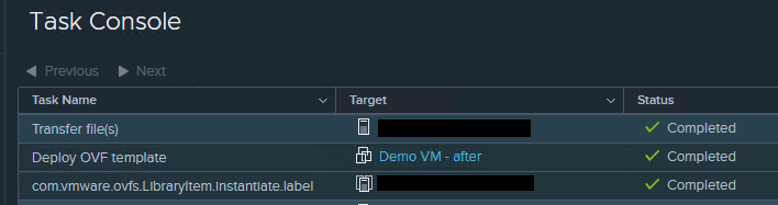 Now re-attempt to deploy the VM and you’ll see the wonderful Status of Completed