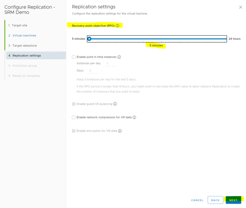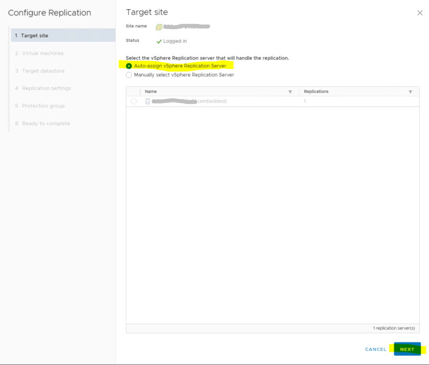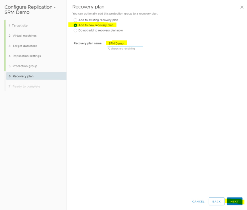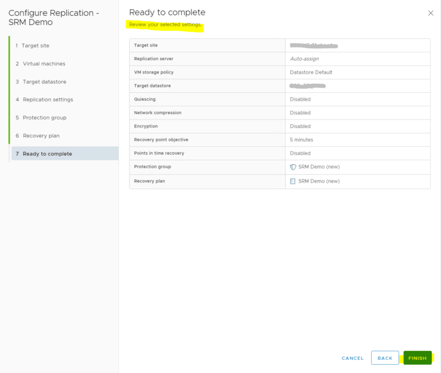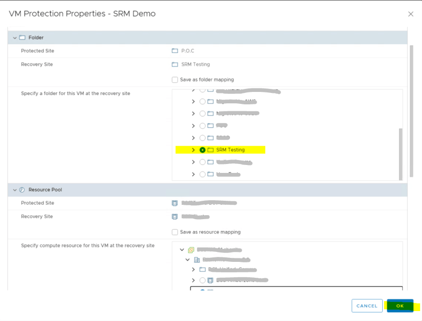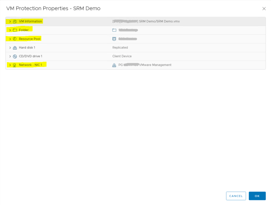 If the site environments are not identical, you may get warnings and must configure the VM for the site it will be recovered to