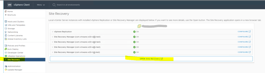Select Site Recovery from the drop down Menu and Open Site Recovery