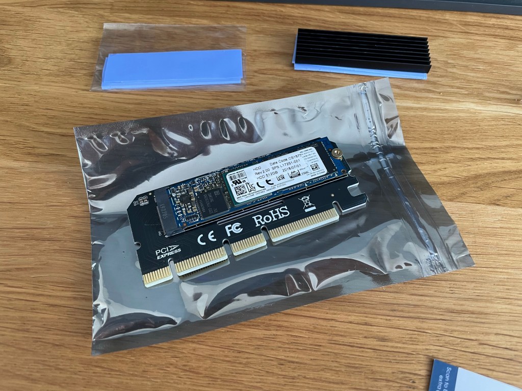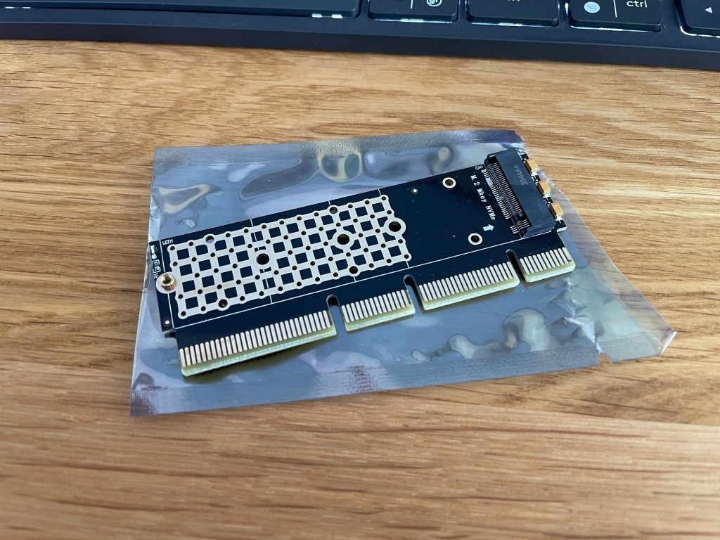 The E200-8D has a PCIe slot which can be used for another SSD with the correct adapter. I had a spare 512GB NVMe which was going spare from an old laptop so purchased a PCIe to NVMe adapter and gained some more storage.