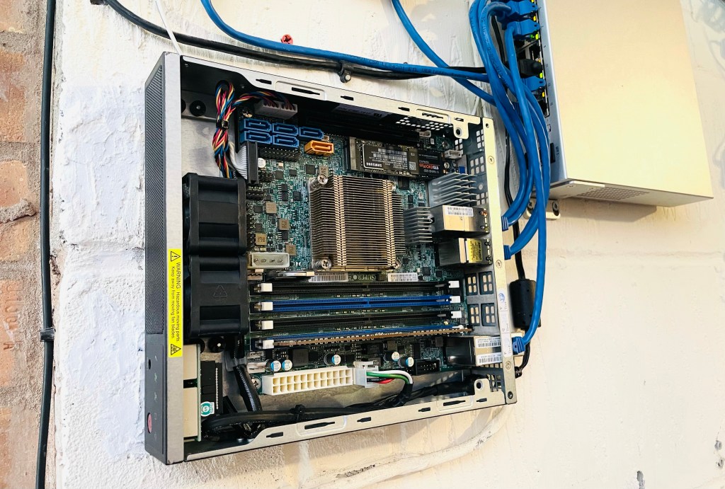Connected the E200-8D to my Ubiquiti US-16-150W UniFi switch and configured it so it’s available on my home network.