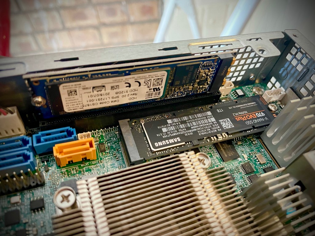 The first tasks were to add a 1TB Samsung 970 EVO Plus NVMe SSD and apply any firmware and IMPI updates