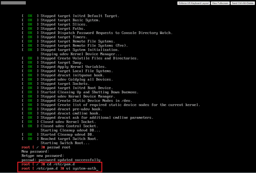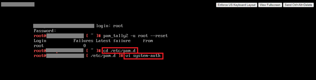 Open the system-auth file by typing vi system-auth > hit Enter to submit