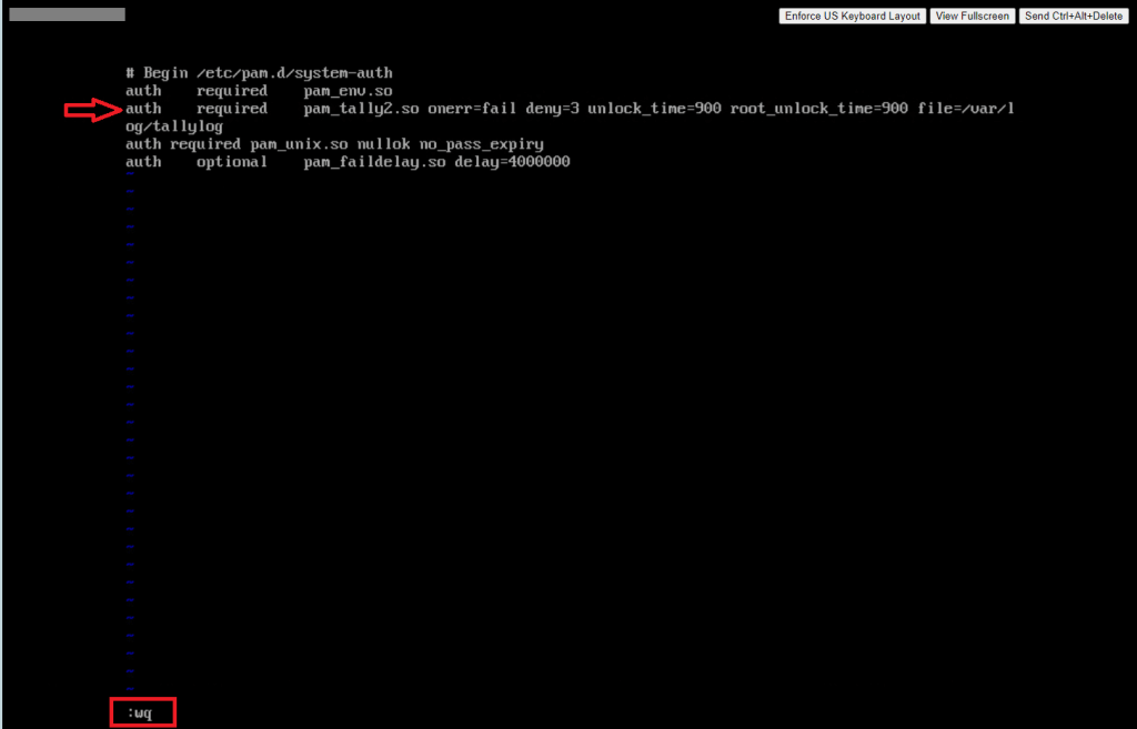Open the system-auth file again by typing vi system-auth > hit Enter to submit