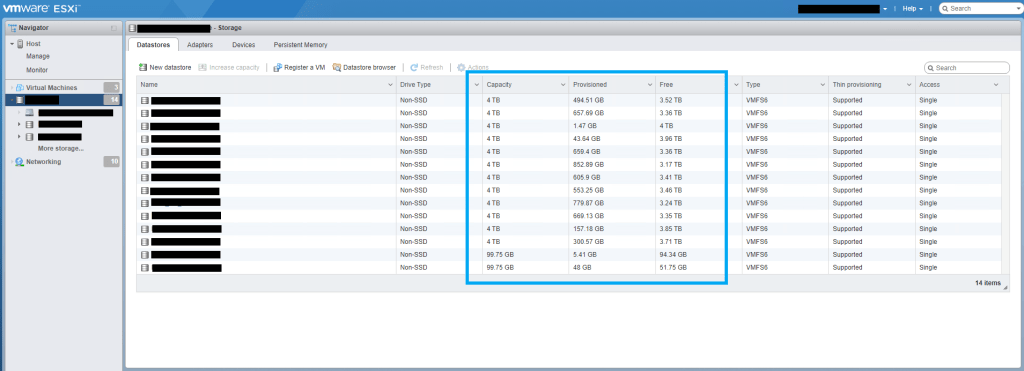 A storage administrator mistakenly removed the VMware ESXi host mappings which were still mapped and being used in Production environment from the SAN. This of course impacted live services and I was the lucky person on call. I’ve posted this because I’d hoped that simply readding the host mappings on the storage might resolve the issue but found it wasn’t the case. After adding the mappings again, it seemed random which LUNs were showing as mapped devices and which could access data so after attempting a few methods of reconfiguring the storage, I discovered a process which although left VMs in a mixture unavailable and invalid states, successfully presented the storage back to all the hosts as expected.