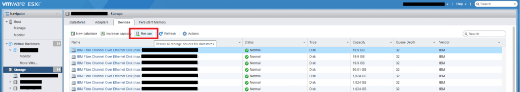 Navigated to the Storage section > Click Rescan and refreshed the storage devices