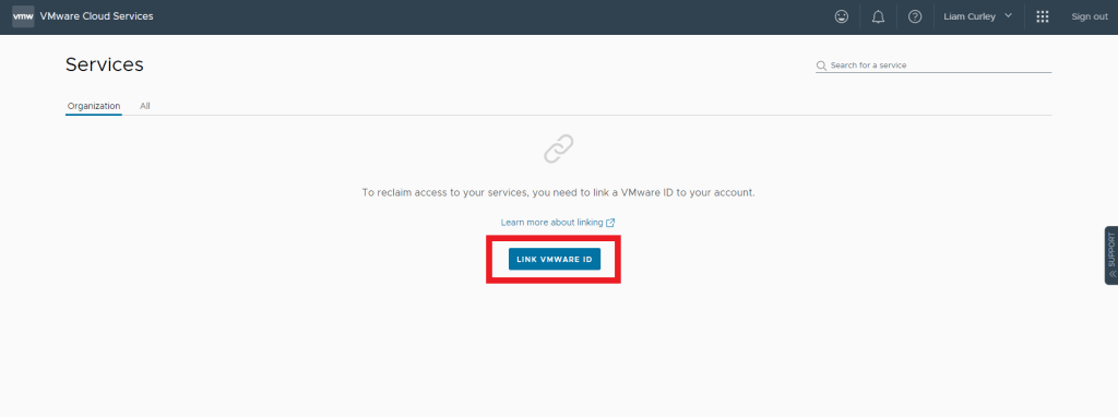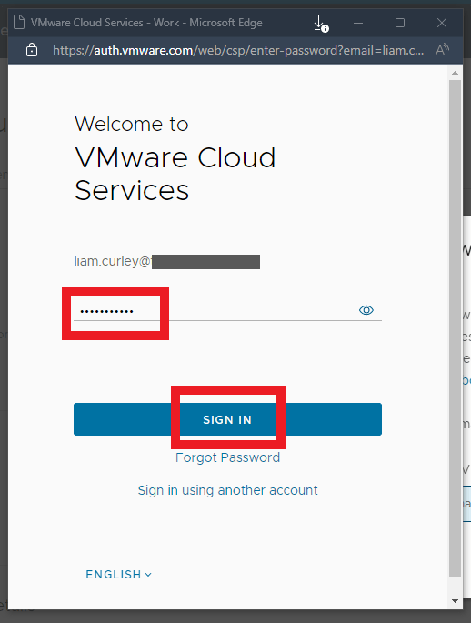 Enter your VMware ID password previously used for Customer Connect and Cloud Services > Click Sign In