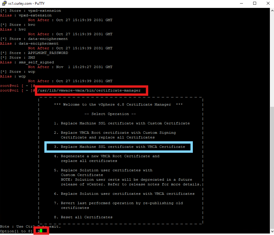 Then select Option 3 to Replace Machine SSL certificate with VMCA Certificate