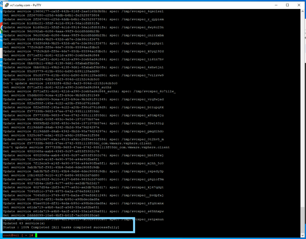You’ll receive the following info to confirm all services have been updated and tasks have completed successfully